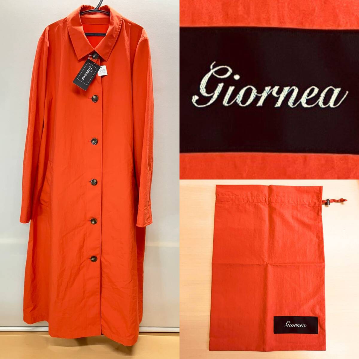 - Giornea(ジョルネア)ステンカラーコート オレンジ サイズ 11(L)フード、ポーチ付き