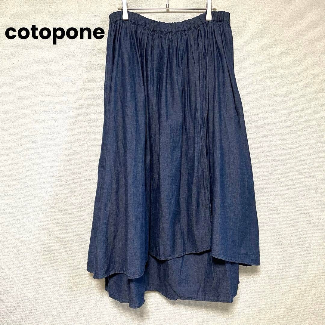 - qq171 コトポーネ/レイヤードフレアスカート/デニムロングスカート/濃紺