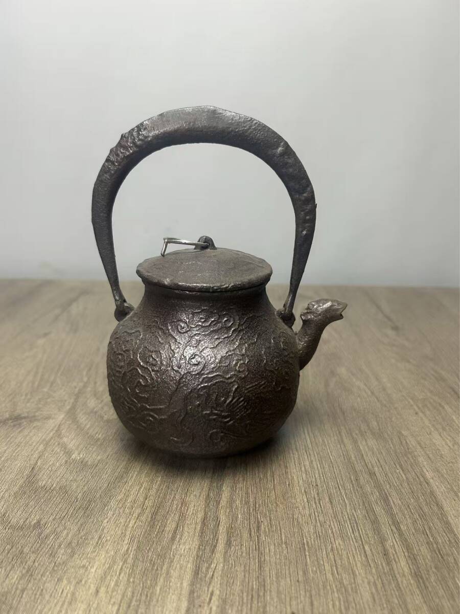 - 藏六造獣口鉄瓶 急須 茶道具 老鉄瓶 鉄器 提梁壺 茶道具 600ml 品15-1