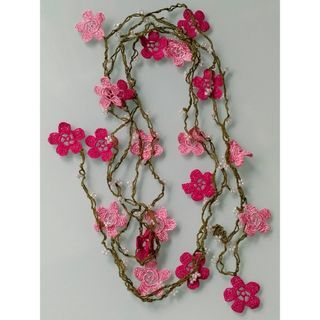 - r20-39 オヤ刺繍 フラワー刺繍 ロング ラリエット ネックレス ピンク