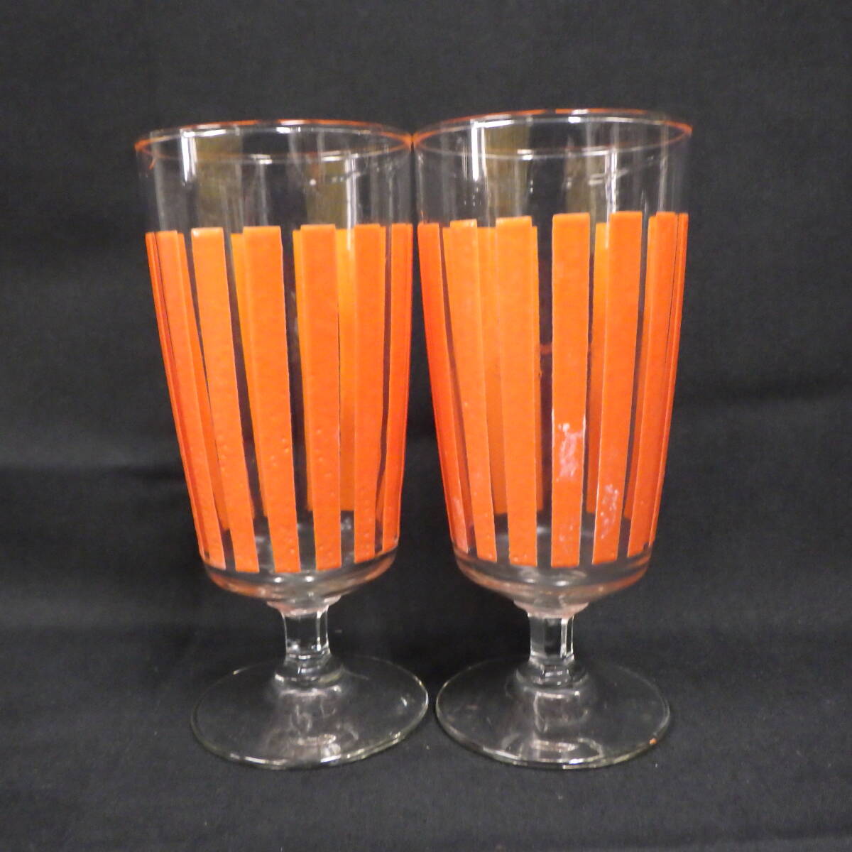 - 昭和 レトロ コップ ストライプ グラス 可愛い おしゃれ ポップ 脚付き 2客セット