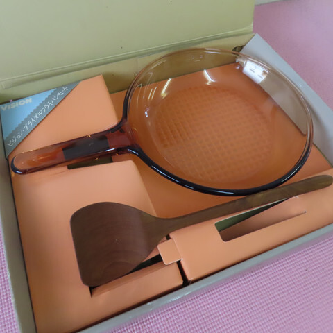> ●●佐前⑨123-③ ビジョン フライパンセット 未使用保管品 フライパン ターナー 木べら セット VISION 超耐熱硝子 硝子製 調理なべ 片手