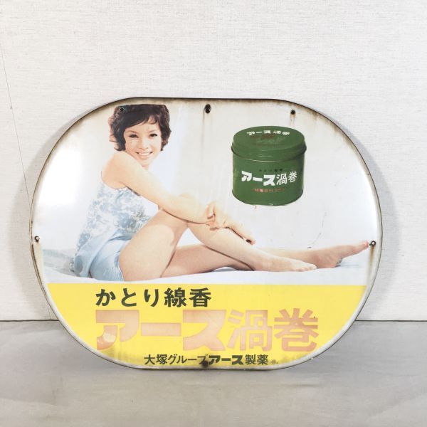 - 【昭和レトロ】琺瑯看板 ホーロー看板 由美かおる 蚊取り線香 かとり線香 アース渦巻 大塚グループ アース製薬