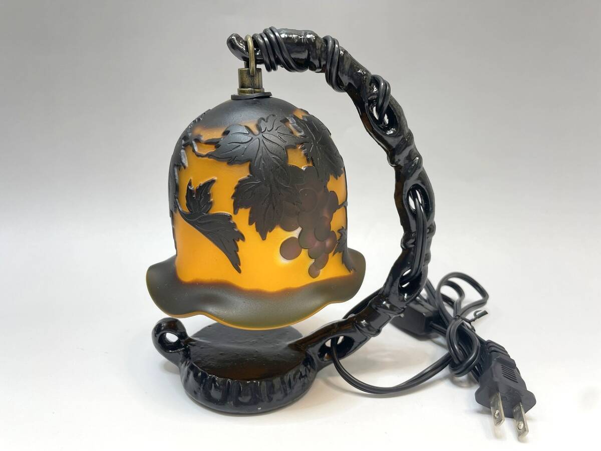 - 極美品 ガレ風ランプ テーブルランプ ぶどう柄 電気スタンド 吊り下げ型 ガラス工芸 アンティーク風 ヴィンテージ風 動作確認済 C