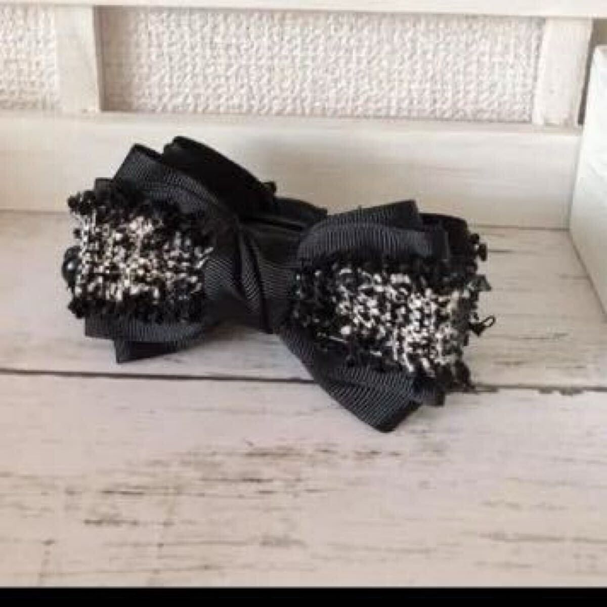 - 【ハンドメイド】ツイードリボンバナナクリップ☆ヘアアクセサリー387