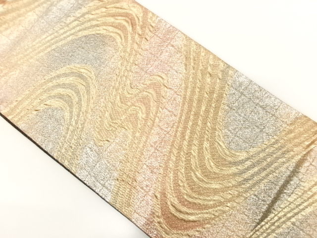 - 美品 未使用品 宮本貞男製 流水模様織り出し 全通 振袖用 袋帯 (IBE1K-031)
