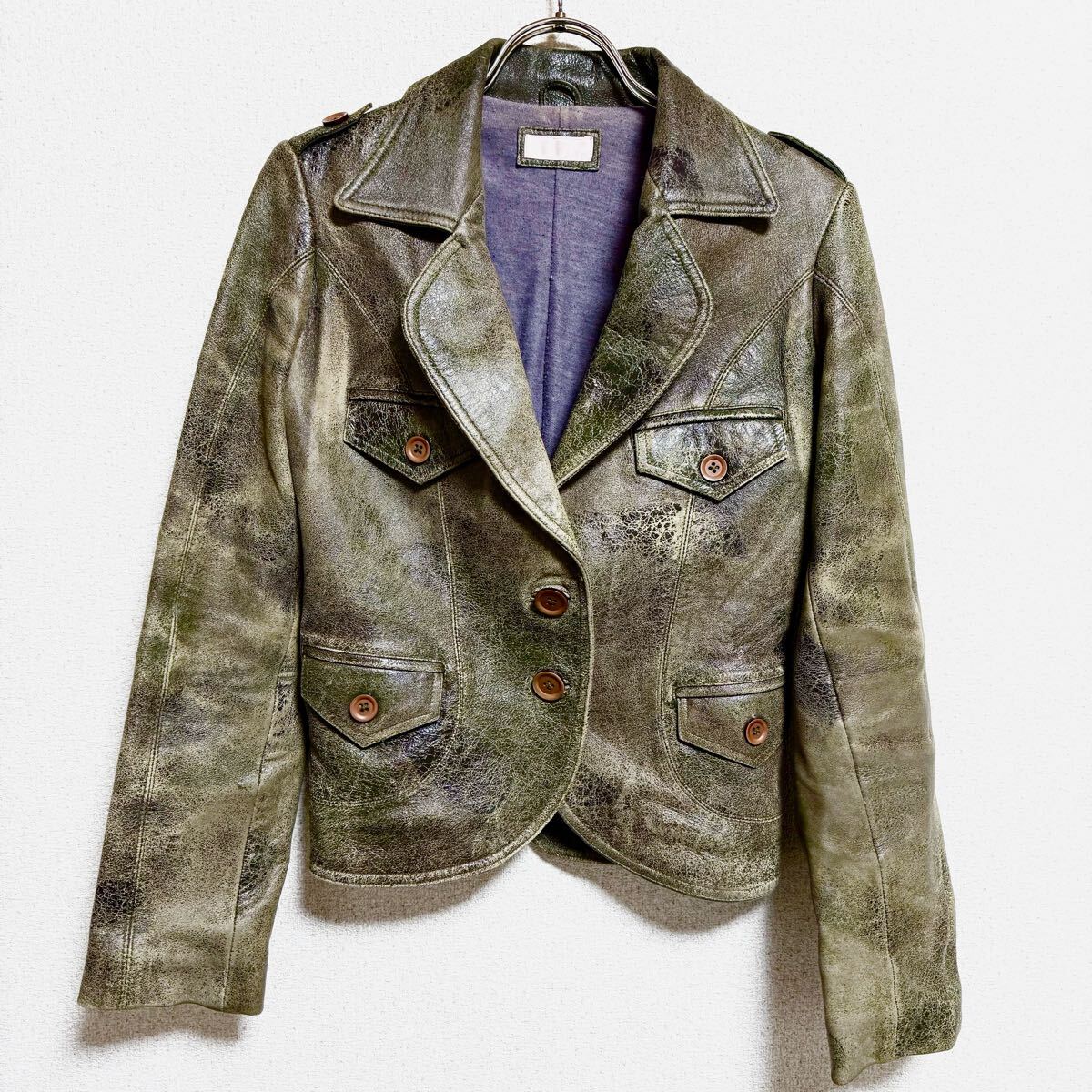 - LAM CI ラムシー レザージャケット ライダースジャケット オープンカラー シングル グリーン系 レディース サイズ S *DF