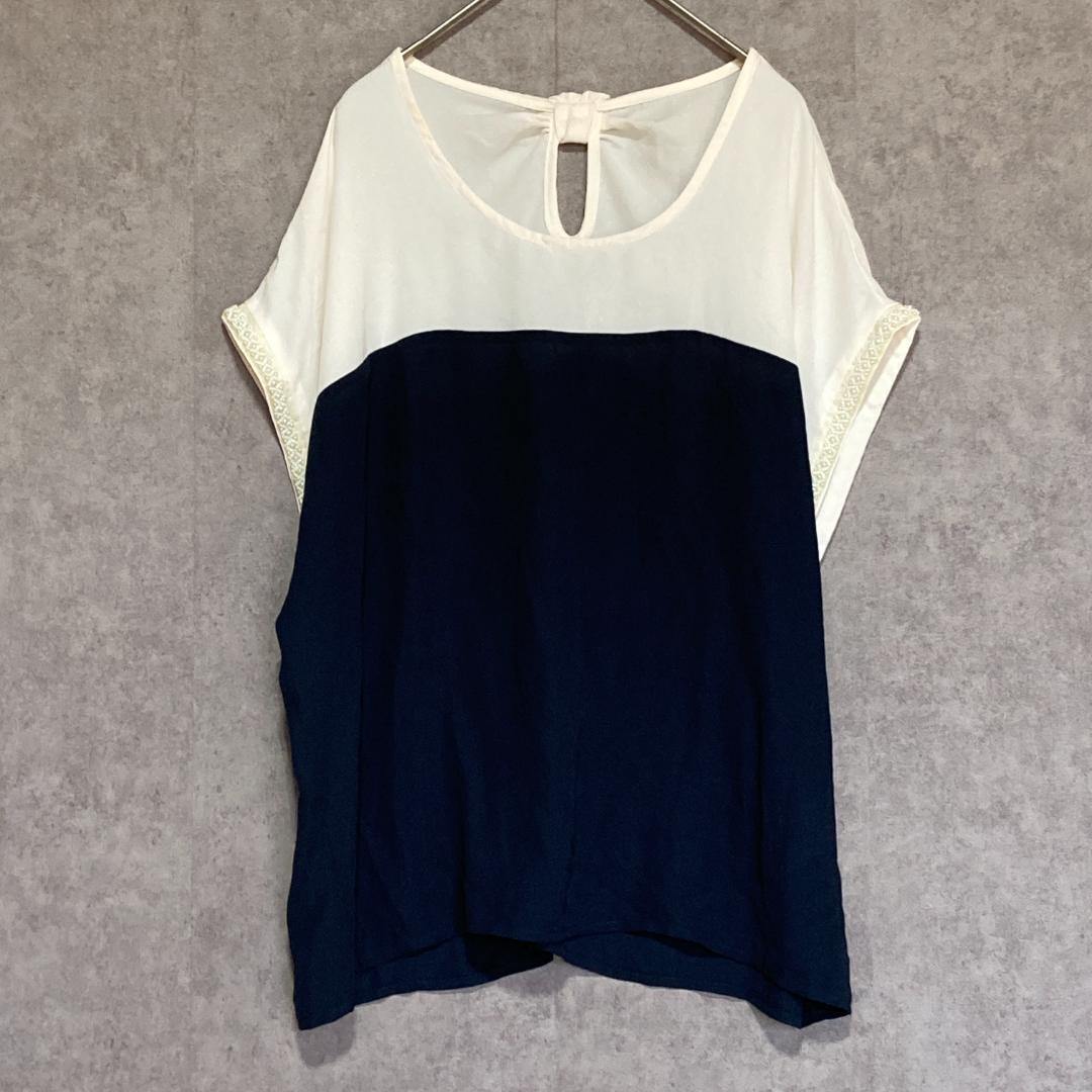 - 【美品】グローブ(M)バイカラーシフォンカットソー*ドロップショルダー*ビジュー