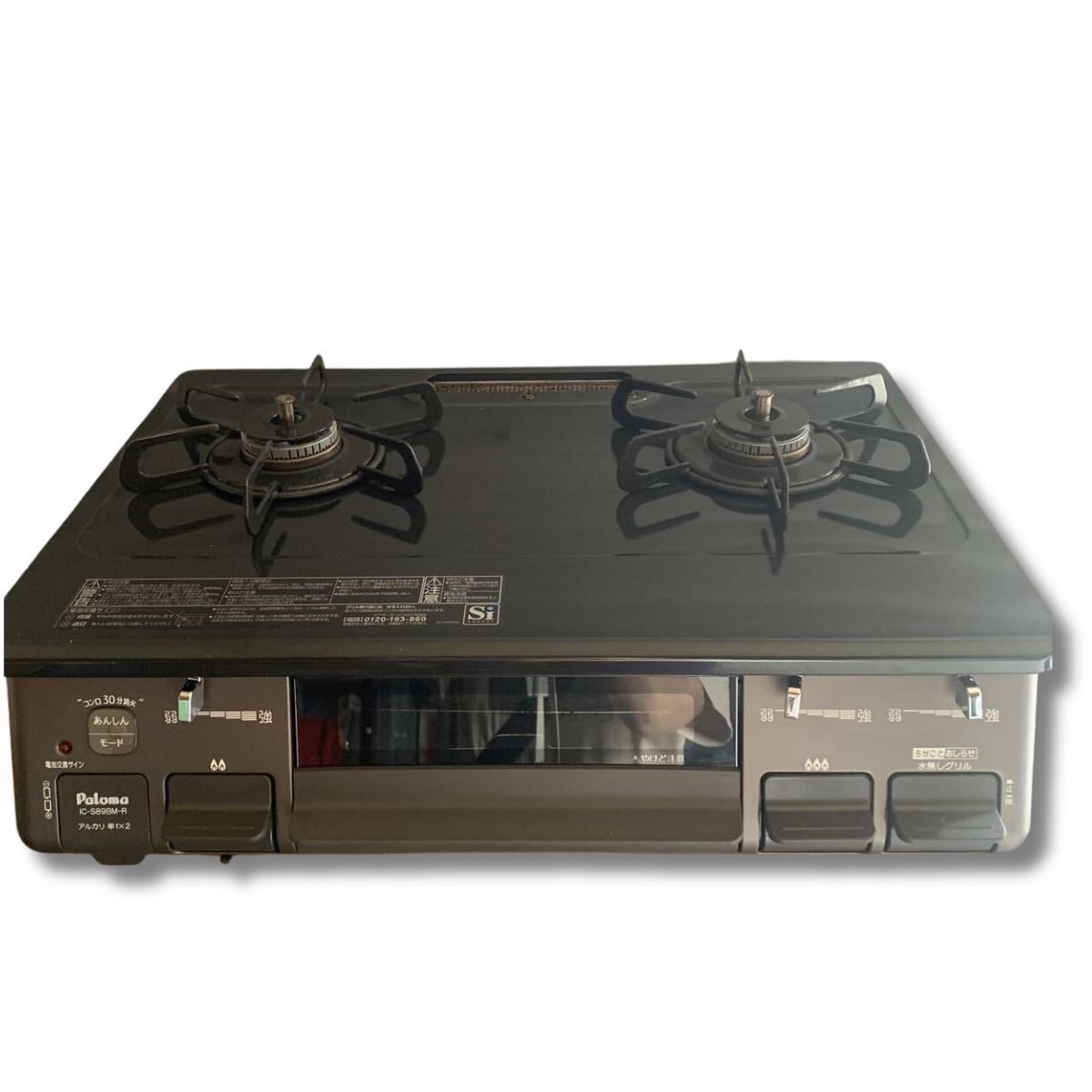 - 【中古品】ガスコンロ パロマ IC-S89BM-R LPガス用 Paloma 2口 水無し片面焼き 消し忘れ消火機能