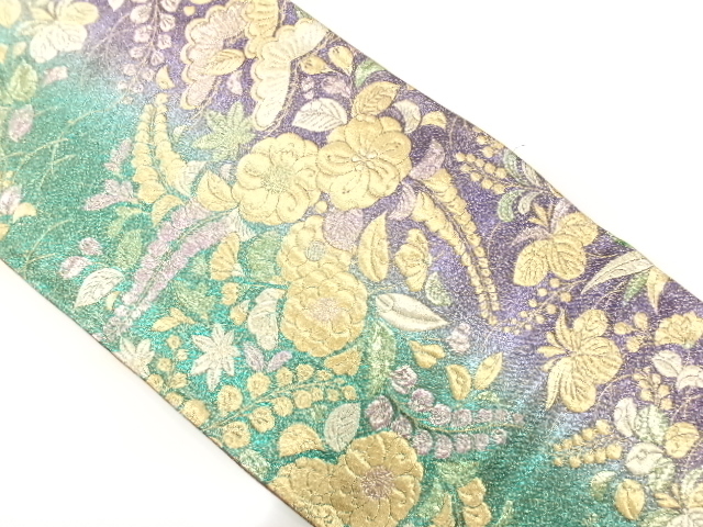 - 美品 金糸 辻ヶ花模様織り出し 振袖用 袋帯 (IBE1K-029)