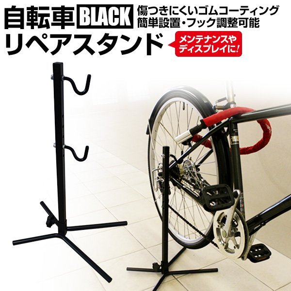 - 自転車スタンド リアフックスタンド ディスプレイスタンド メンテナンススタンド 簡単設置 高さ調節可 据え置き 黒