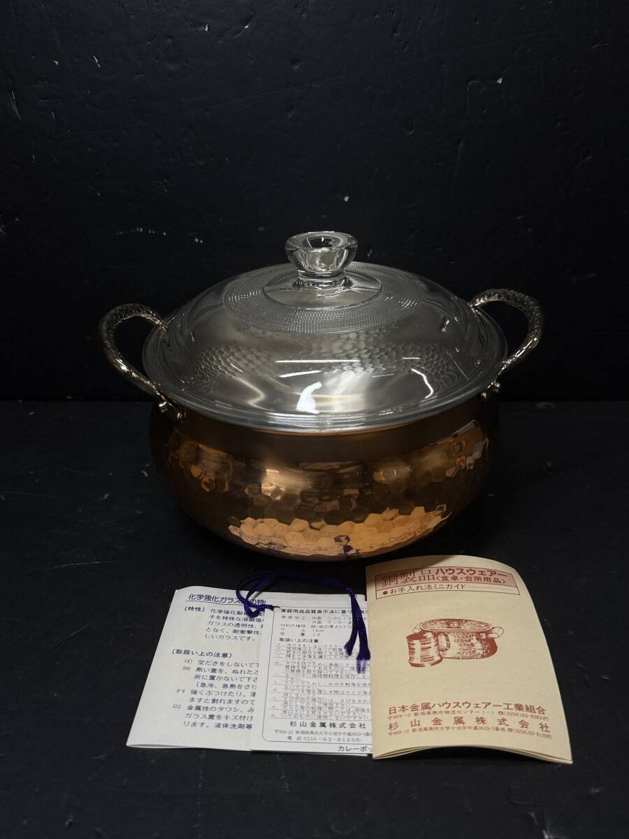 > ★コレクター必見 純銅 カレーポット 直径18㎝ 容量2L 両手鍋 ガラス蓋 銅製 金属工芸 調理器具 コレクション GT450