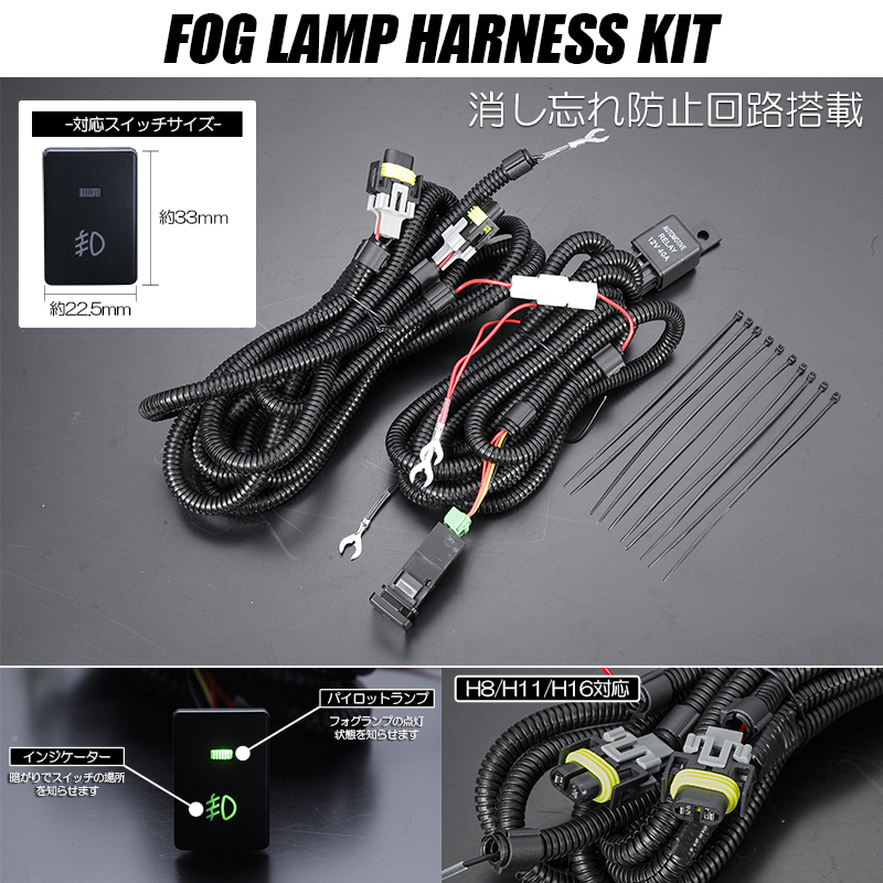 > 消し忘れ防止回路内蔵 トヨタ フォグランプ リレーハーネス H8/H11/H16対応 ハロゲン/LED対応 200系 ハイエース 4型/5型/6型/7型