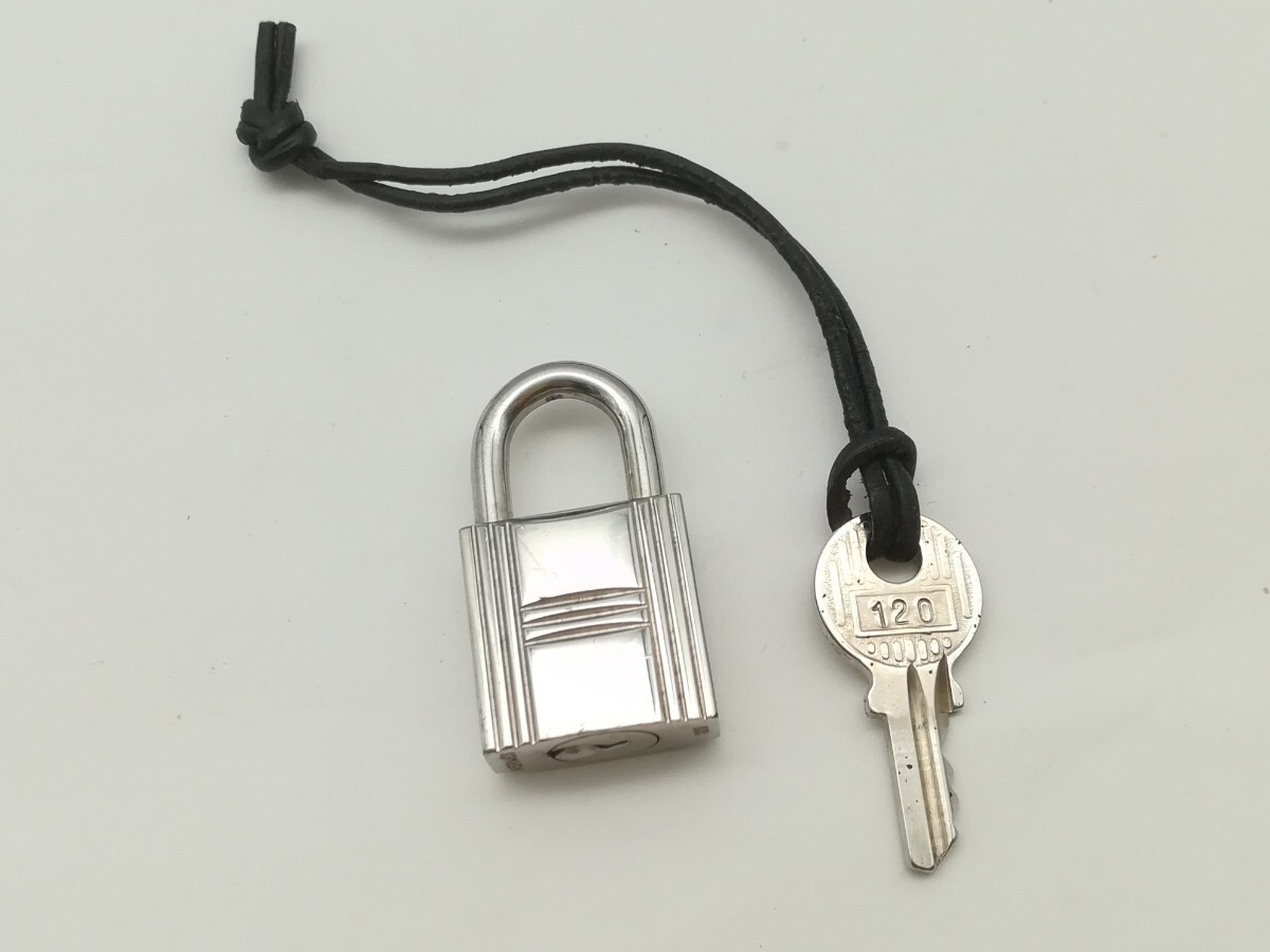 - 美品 HERMES カデナ キー 南京錠 鍵 パドロック 120 シルバー チャーム キーホルダー エルメス 送料無料