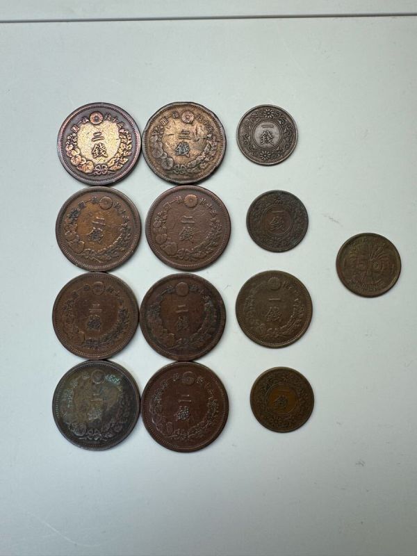- 古銭14枚セット 明治 2銭、1銭 通貨 硬貨 小型 コイン コレクション まとめ売り