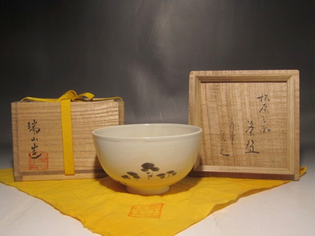 - 瑞山 松原絵茶碗 堀内流十二代兼中斎 宗完 自画 s365