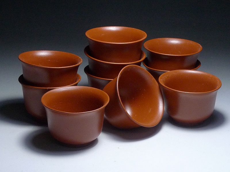 > 6025T01*9B▲中国宜興 朱泥煎茶碗 十客揃い 中国茶器 煎茶道具 中国古玩 紫砂 唐物