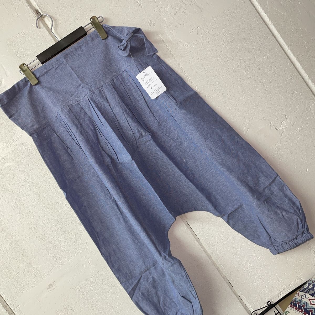 - 綿100%ウエスト絞りサルエルパンツ ブルー