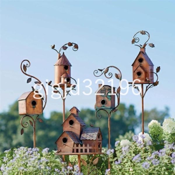 - I0006:◇☆ガーデンバードフィーダー鳥の巣箱、ロッド付きメタルアートステーク、絶妙な鳥の餌、魅力的な家の装飾/選べる4タイプ