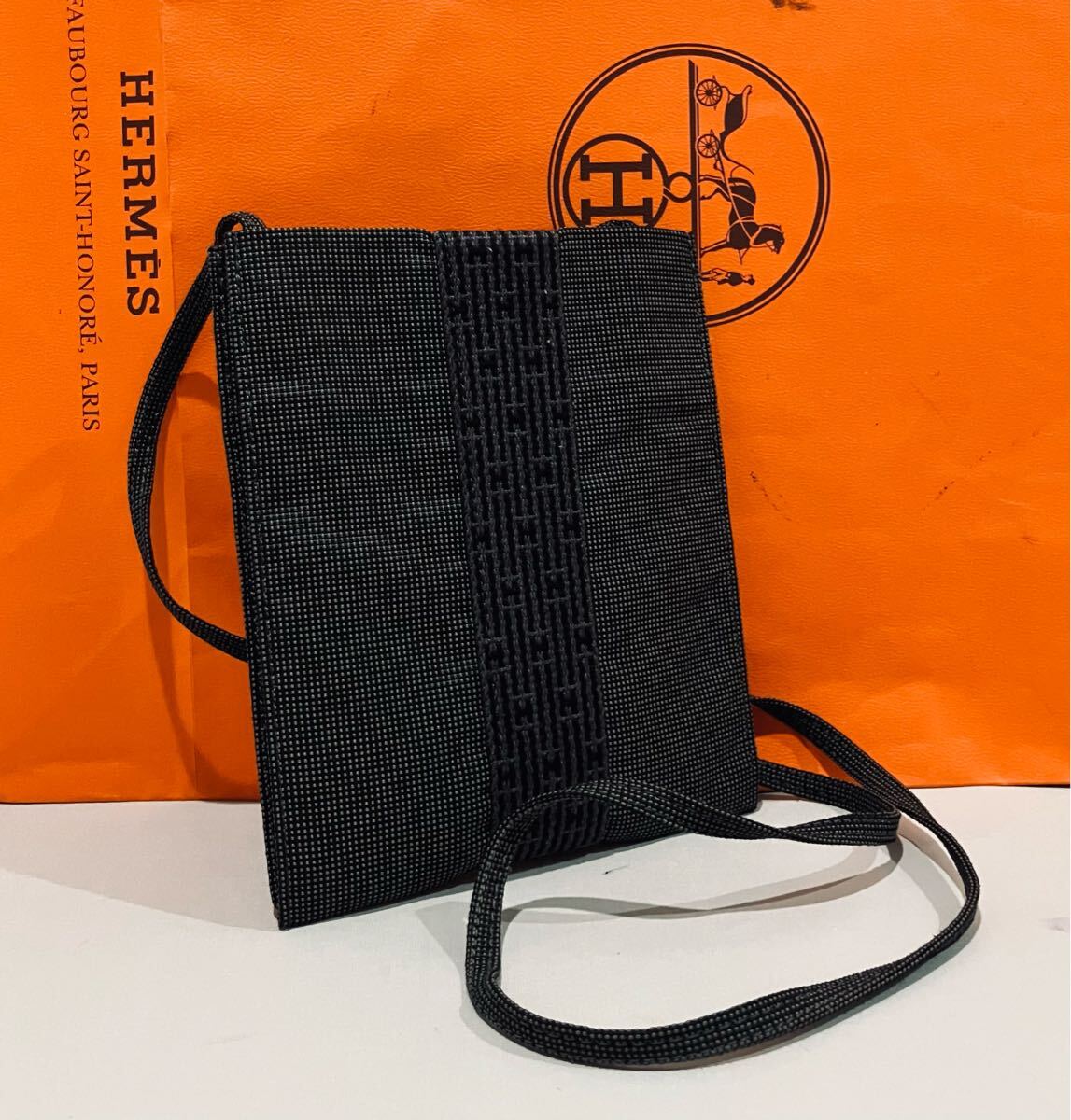 > HERMES ● 新品同様 ショルダーバッグ ポシェット バッグ エルメス エールライン グレー 斜め掛け