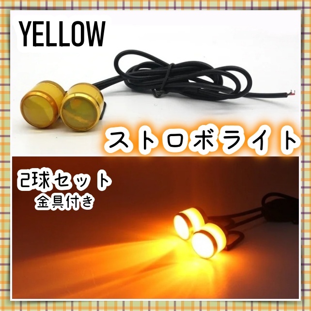 - 新型 まわりも光る LED 12V フォグ ストロボ フラッシュ 2球 点滅 黄色 イエロー デイライト スモール バックランプ ターン バイク 汎用