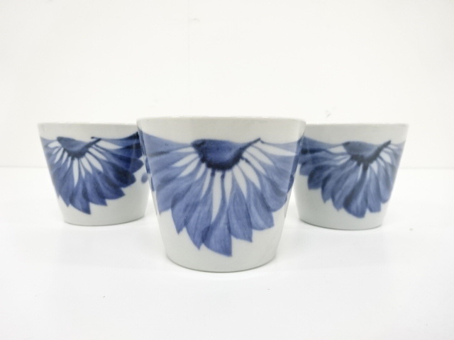 - 作家物 染付 花 蕎麦猪口 3客揃 (IBE2DHP-023)