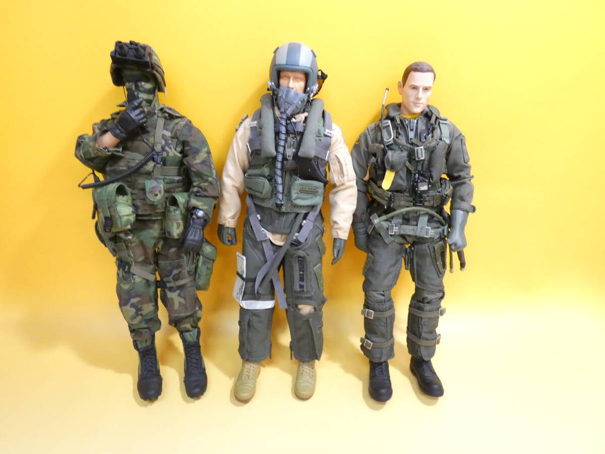 > 【ジャンク扱い】1/6 フィギュアまとめて⑤ミリタリー 軍人 パイロット等 ヘルメット ポーチ等 3体セット メーカー不明J5 S251
