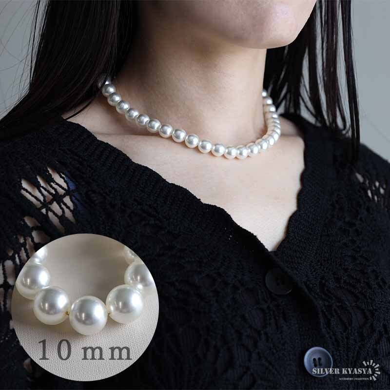 - (43cm) パールネックレス 真珠ネックレス シルバー925 真珠 ホワイト 幅10mm 金属アレルギー対応