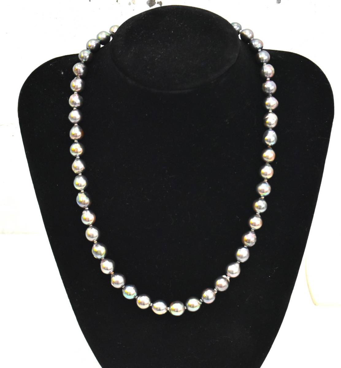- 1□ グレーパール ネックレス 約7mm~8mm強 ラウンド 約42㎝ 黒蝶真珠 タヒチ真珠 黒真珠 グレー系 留め具 表記SILVER