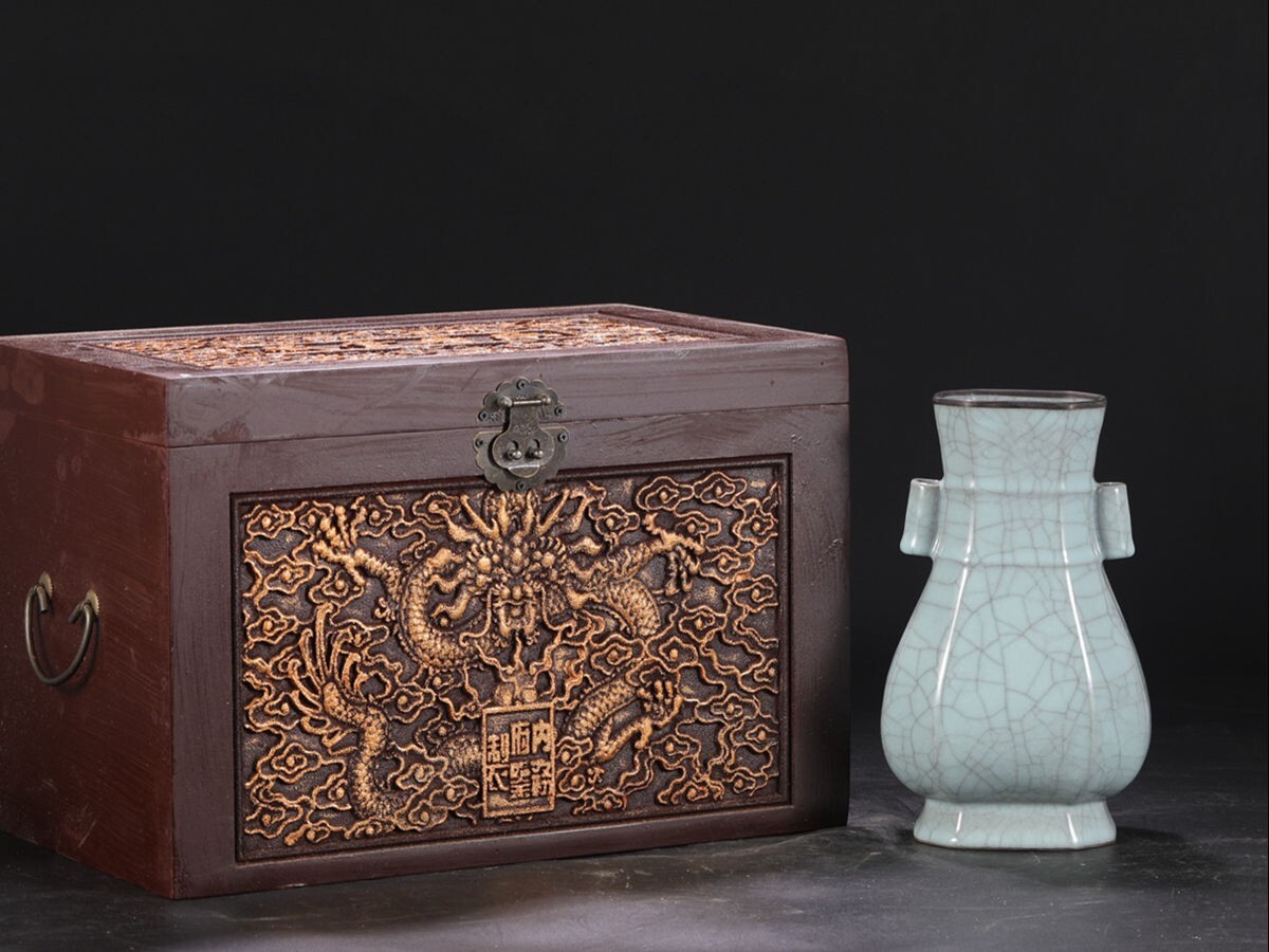 - 「南宋 官窯 陶磁器 青釉銀口 八方貫耳瓶」染付 置物 擺件 古賞物 中国古美術 旧蔵出