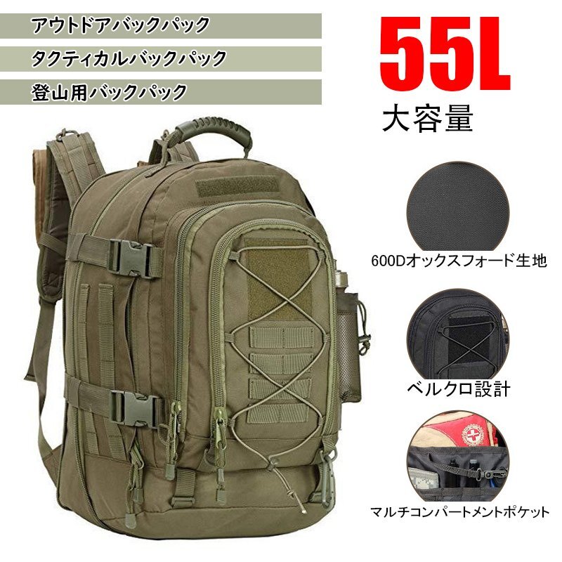 > リュック バックパック 55L大容量バックパック 多機能 丈夫 頑丈 通学 登山リュック 旅行リュック 撥水 防災 ミリタリーグリーン hw768.gr