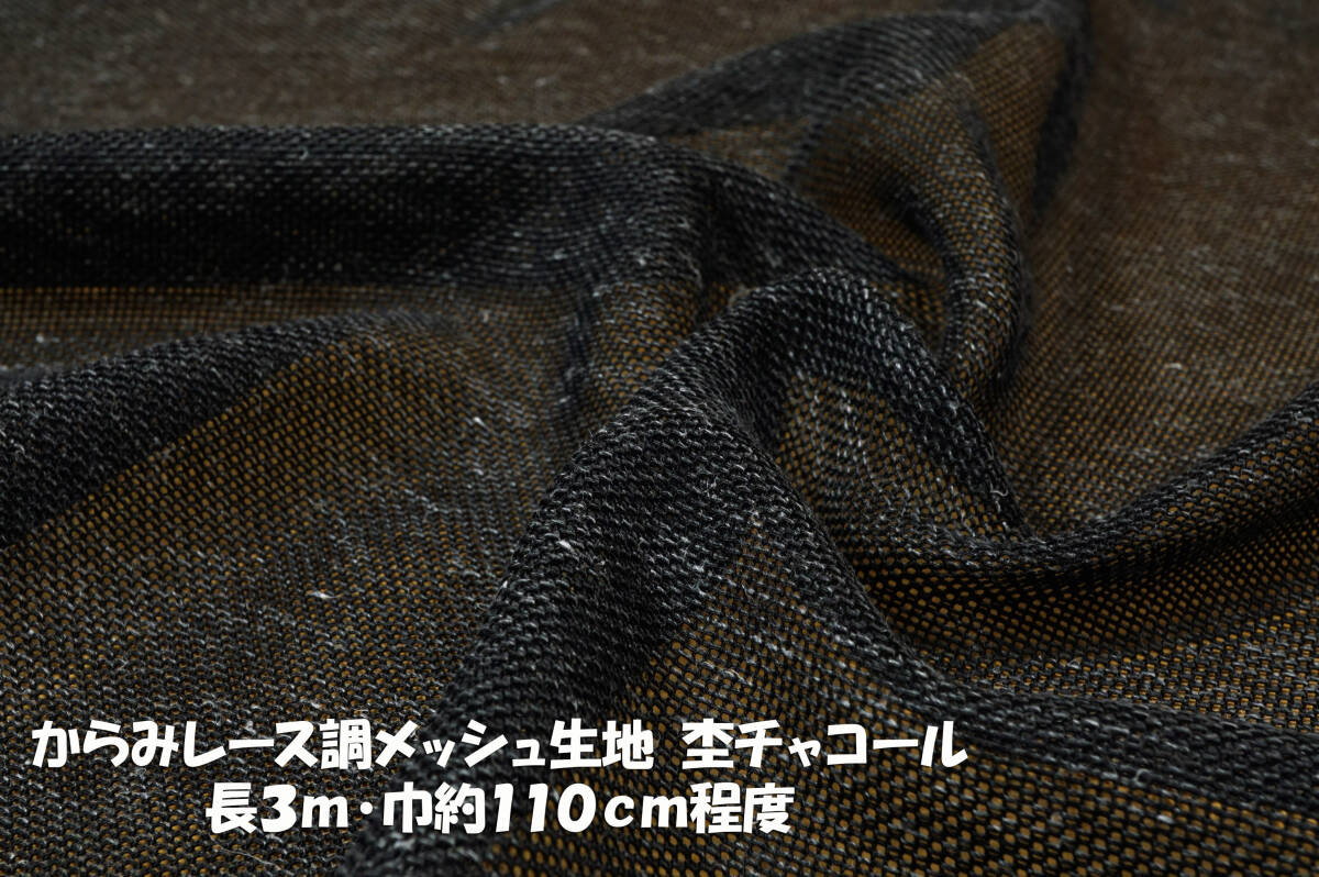 - からみレース調メッシュ生地 杢チャコール やや中厚ややソフト弱透過 長3m巾約110cm レイヤード使い トップス ジレ ベスト スカート