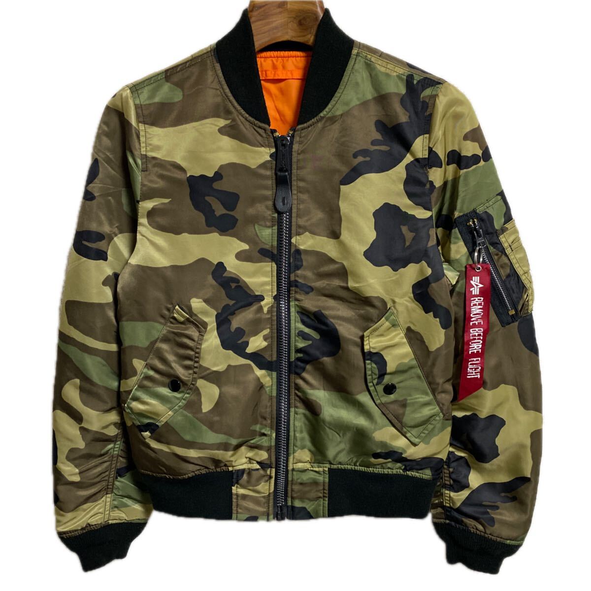 - [送料無料]ALPHA INDUSTRIES/アルファインダストリーズ/MA-1/リバーシブルフライトジャケット/中綿/ウッドランドカモ/レディース/Sサイズ