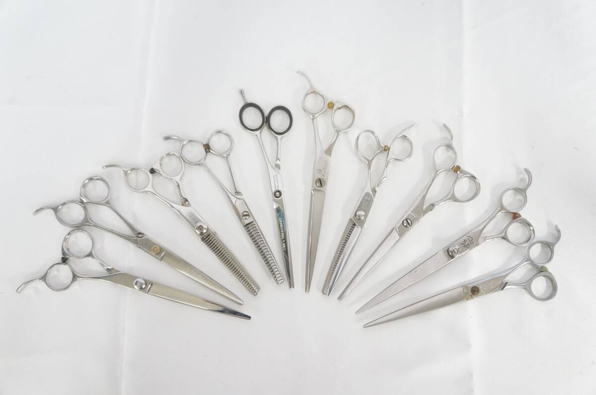 - ⑨ JMC 鋏心 菊星 HIKARI 301 NEW COSMOS 等 理容鋏 10点 まとめてセット セニング シザー 理容 床屋 7009182311