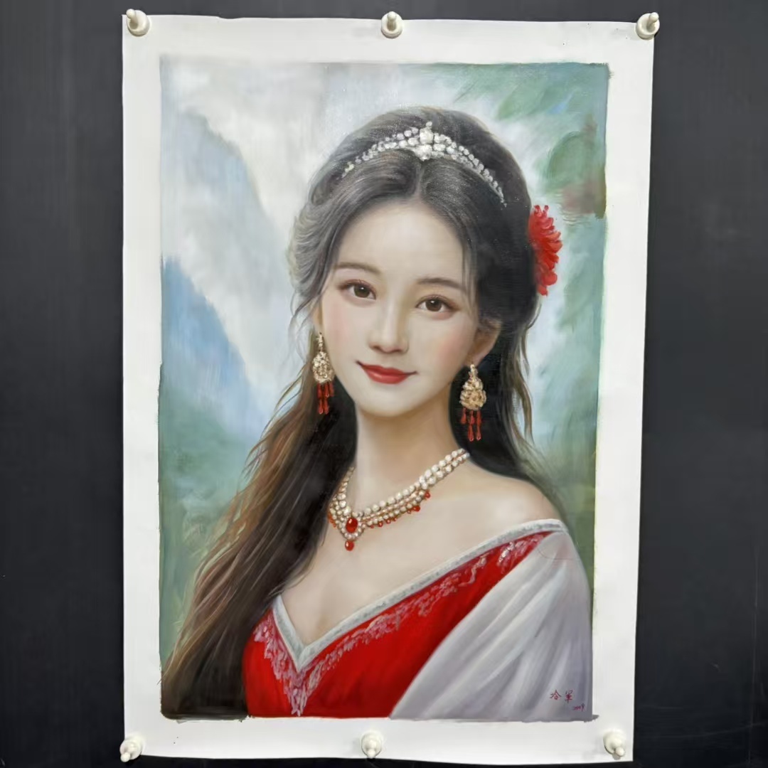 - 油彩 絵画 早期收集 y1 『寒軍 美女 美人画』手描き布油絵 油畫 旧藏 中国古画 純手描き画 古美術品 時代物 中国古玩 骨董品 925