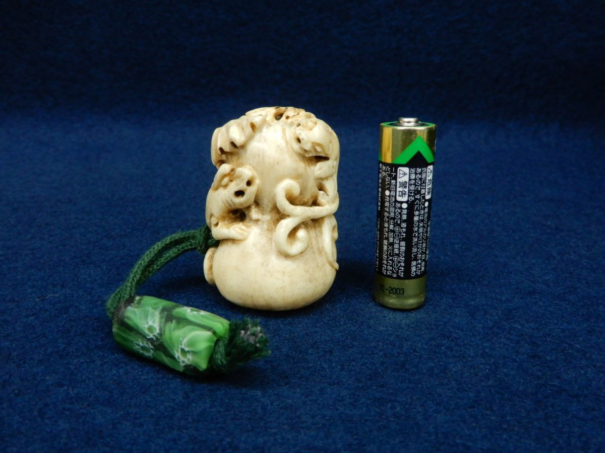 - ★根付06 骨彫 無銘「透かし獣之図」緒締め★提げ物/消費税0円