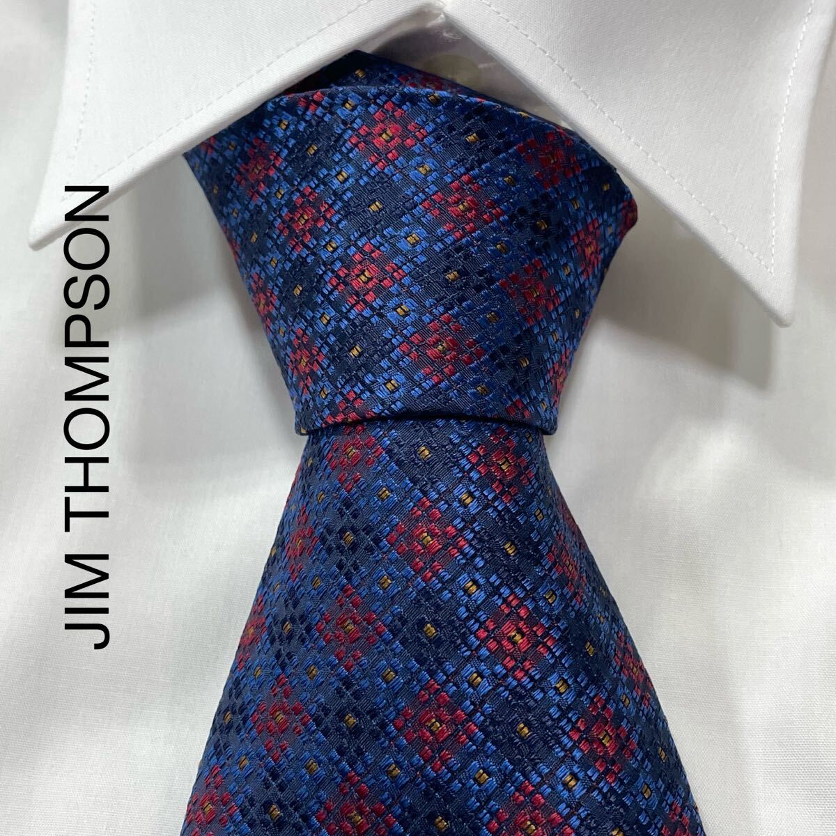 > 美品 JIM THOMPSON ジムトンプソン パターン柄 ジャガード シルク ネクタイ ブルー ネイビー レッド ブラウン TG2895