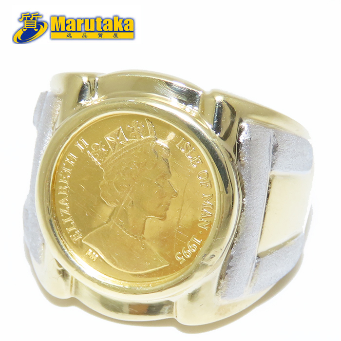 > クラウンコイン リング 純金 15号 K24 K18 Pt900 YG エリザベス マン島 キャット 1/25oz 指輪 コンビ 逸品質屋 丸高 尼崎