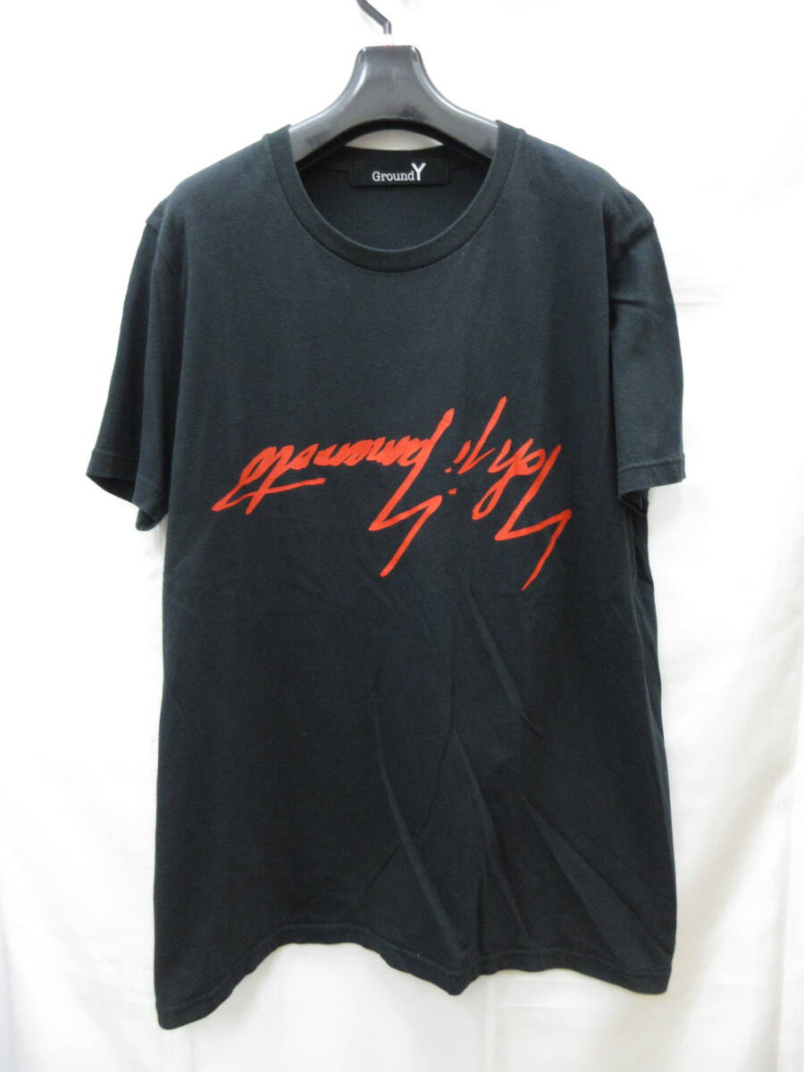 > Ground Y グラウンドワイ 半袖カットソー サイズ3 ブラック 黒 ヨウジヤマモト 逆さ 赤ロゴ(111)a