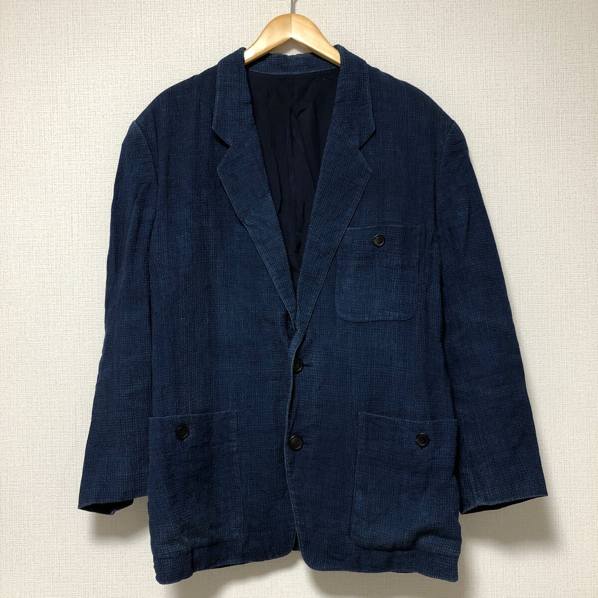 > (k) ISSEY MIYAKE イッセイミヤケ デカタグ インディゴ テーラード ジャケット 日本製 サイズM メンズ フォーマル リネン&コットン