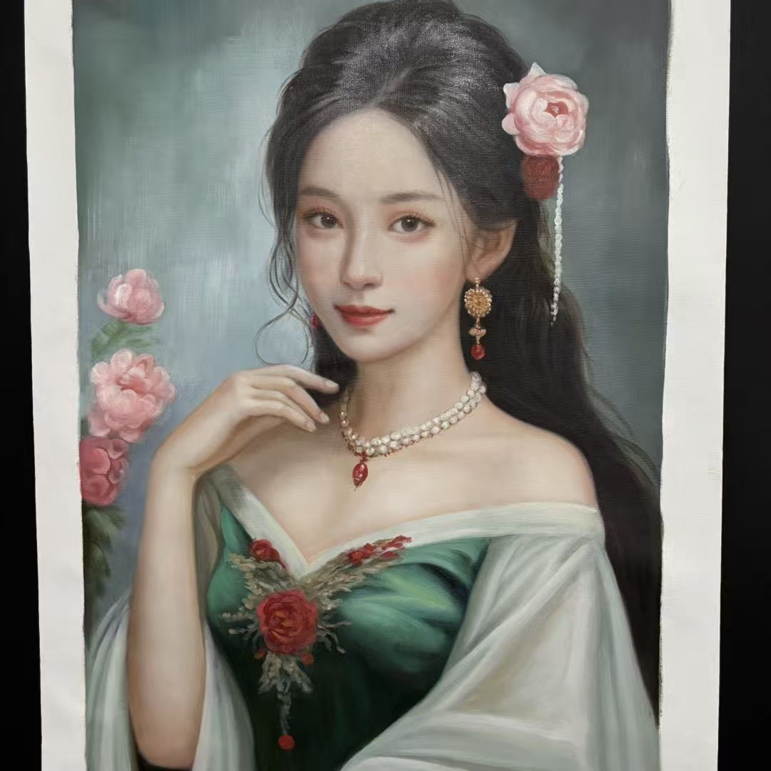- 油彩 絵画 早期收集 y5 『 寒軍 美女 美人画』手描き布油絵 油畫 旧藏 中国古画 純手描き画 古美術品 時代物 中国古玩 骨董品 925