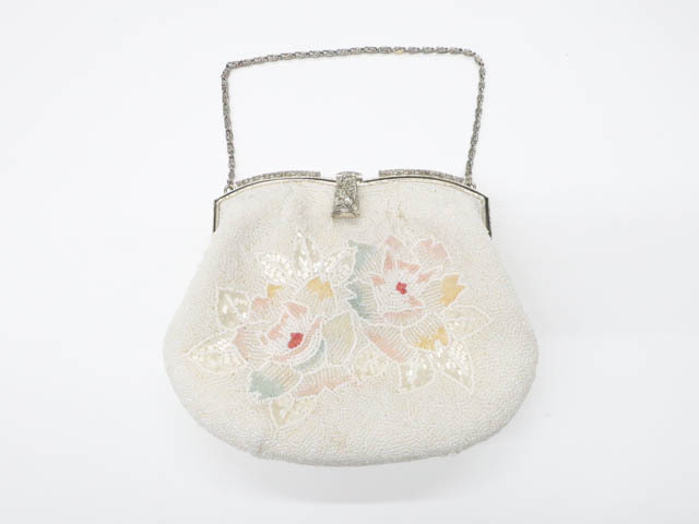 - 《京都一輝堂》リサイクル着物 和装小物 アンティーク ビーズバッグ 花文 sok7w07-109