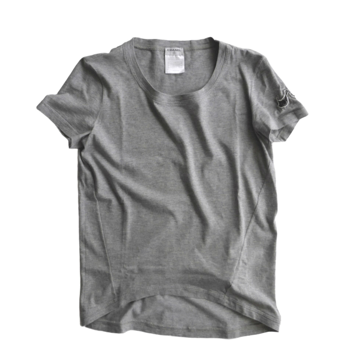 > シャネル (CHANEL) 半袖 カットソー Tシャツ トップス ビジューデザイン 38 グレー P31206 ウェア(中古)