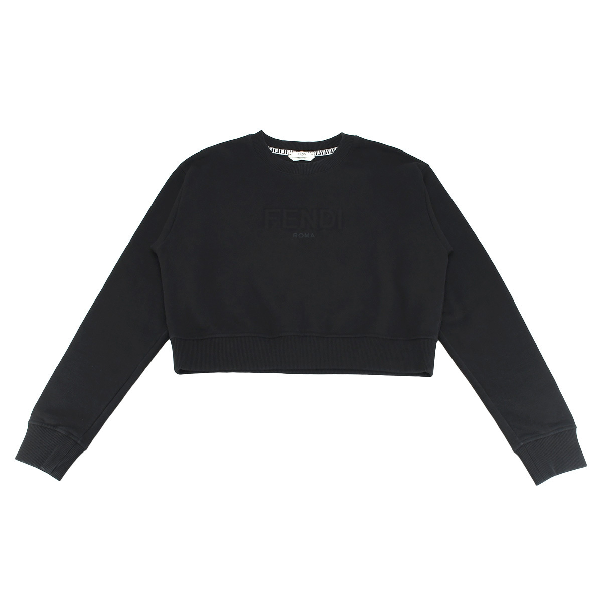 - フェンディ FENDI スウェット 長袖 ショート丈 ロゴ トレーナー トップス レディース コットン ブラック 黒 サイズS FS7427 アパレル 中古
