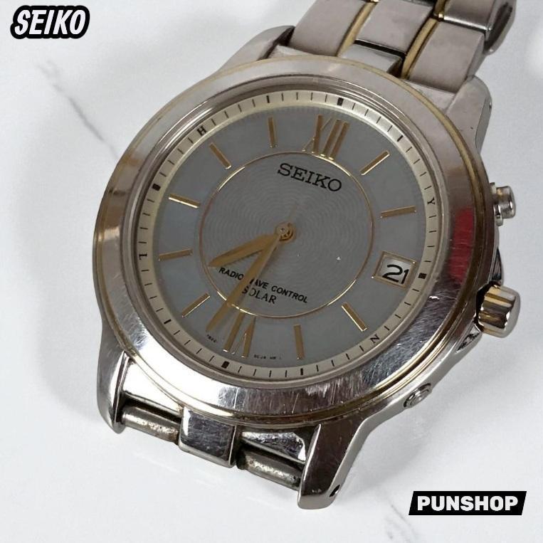 > SEIKO セイコー 電波ソーラー腕時計 メンズ シルバー×ゴールド コンビ おしゃれ 定番人気 送料無料 大人 収納抜群 おでかけ 人気商品