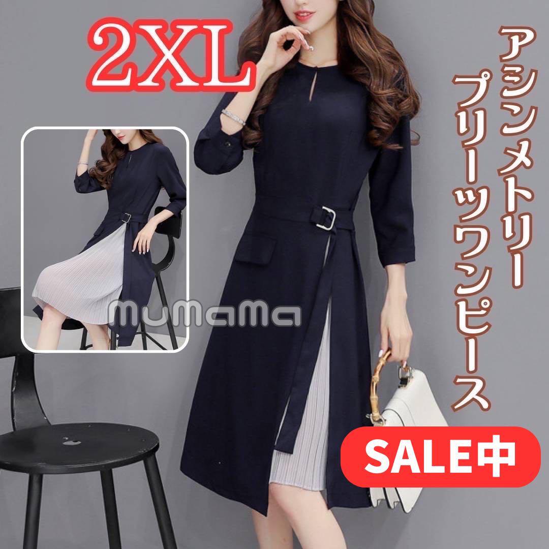 - ☆SALE☆プリーツワンピース 入学式 2XL ネイビー ママコーデ フォーマル イベント 二次会 七五三
