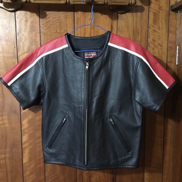 - 古着 超美品 ナンカイ 90’s ヴィンテージ 半袖 レザージャケット size L パンチングレザー 南海 NANKAI 旧車にもバッチリ