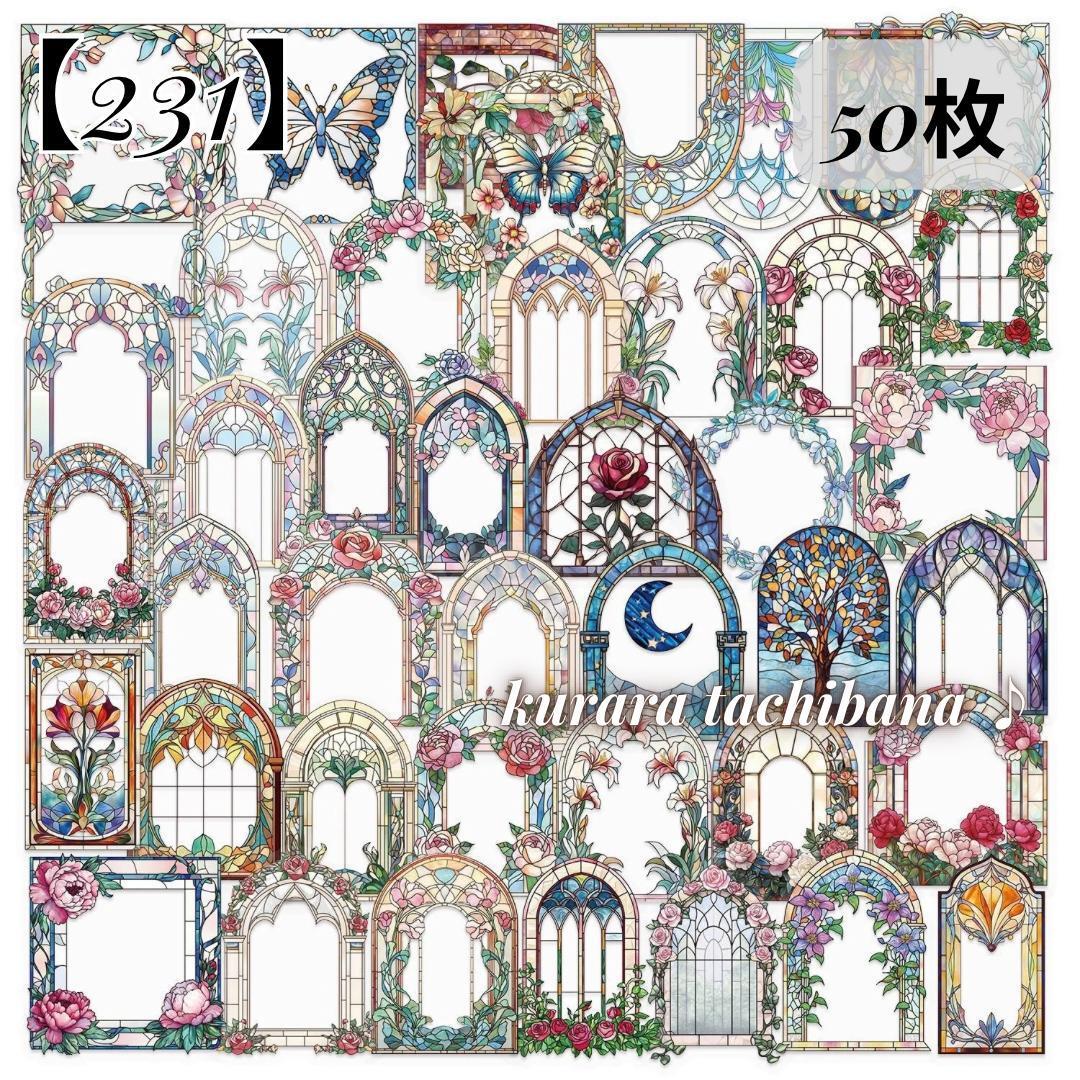 > 【231】コラージュ素材 シール ステッカー ステンドグラス PET 装飾 ジャンクジャーナル スクラップブッキング デコ アルバム 50枚