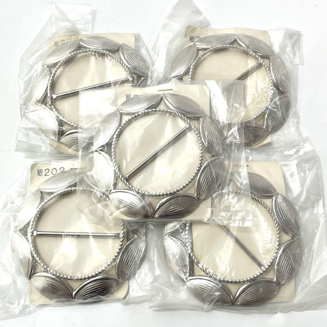 - ば23【希少まとめ売り】アンティーク バックル 5個セット 金属パーツ ◇バッグ修理・ベルトリメイク・衣装製作 丸型花モチーフ レトロ