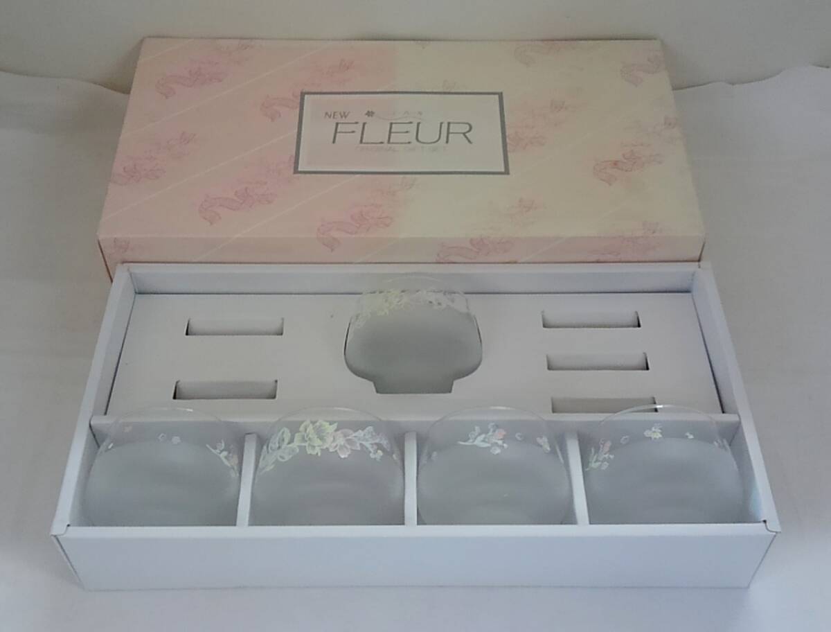 - 【菊水-556】NEW FLEUR ニューフレール 冷茶グラス 5客セット/ガラス製/花柄/割れ物/中古(IT)